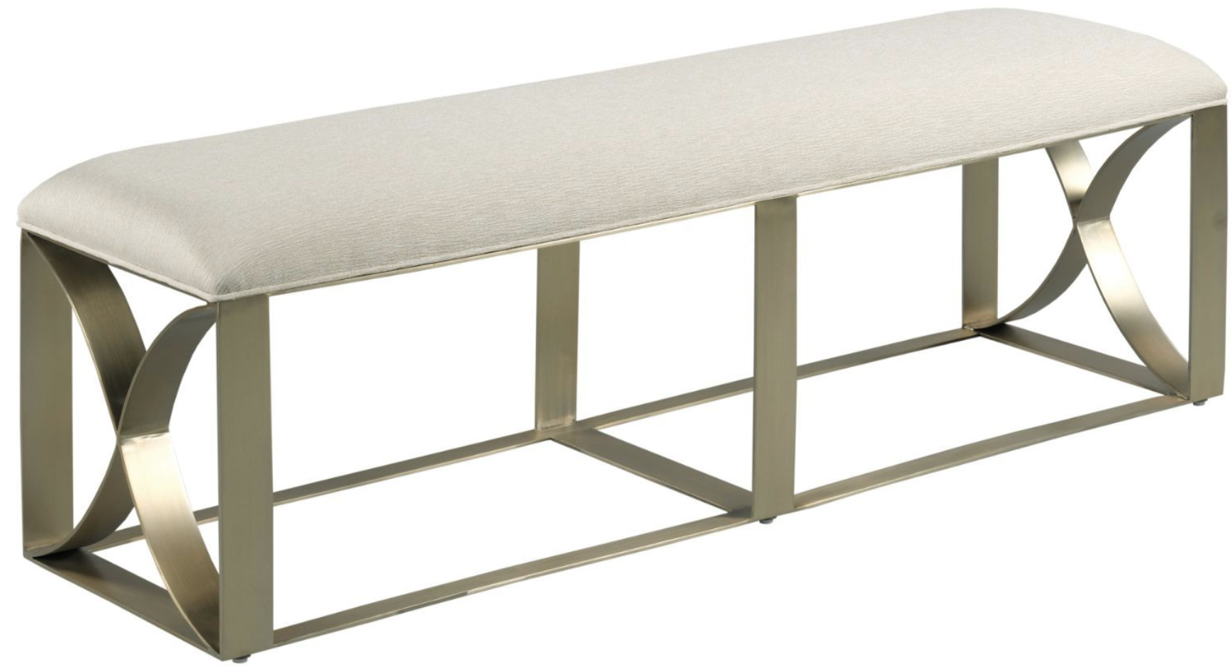 This versatile bench combines comfort and style, featuring a sturdy frame and sleek design that complements any décor. The Lenox bench features a beautiful metal base in a brassy champagne finish. The bench has an upholstered top in fabric Lennox Cream.Read More