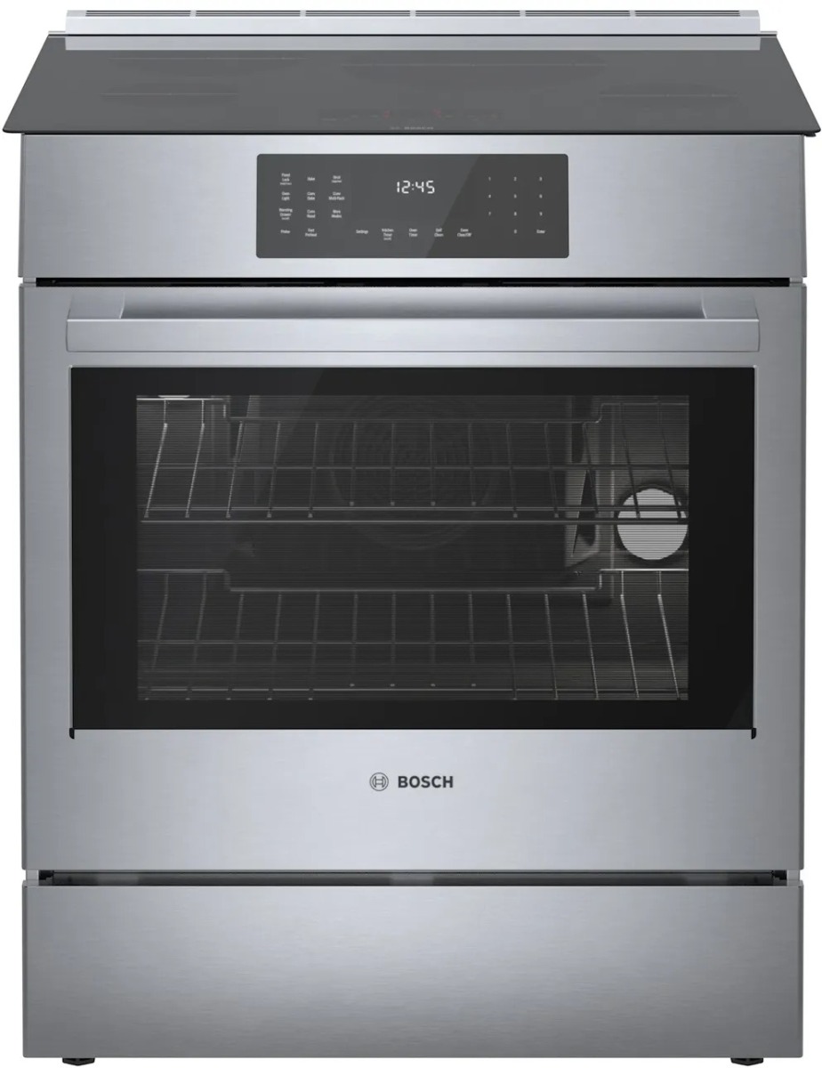 The Bosch 800 Series 30" induction slide-in range in stainless steel delivers timeless style and premium cooking technology. The slide-in range design can replace a freestanding range cutout and slides back against the wall for a sleek built-in look.Read More