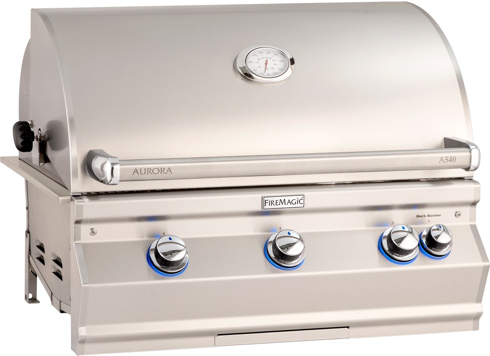 Analog Thermometer with polished stainless steel bezel is embedded in the hood. It is large and attractive with a forward angle for easy viewing.