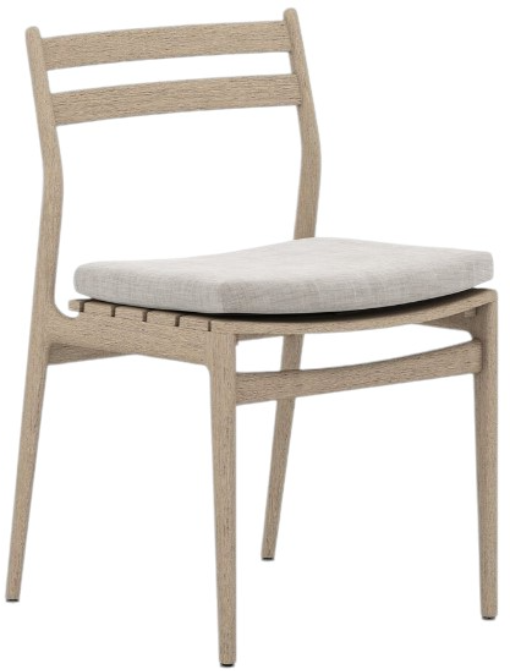 Slim, simple style. Washed brown teak offers streamlined support for a single cushion upholstered in UV-resistant and water-repellent fabric in a neutral stone grey. Cover or store indoors during inclement weather and when not in use. Our Weatherproof Outdoor Dining Chair Cover in size small fits this chair.Read More