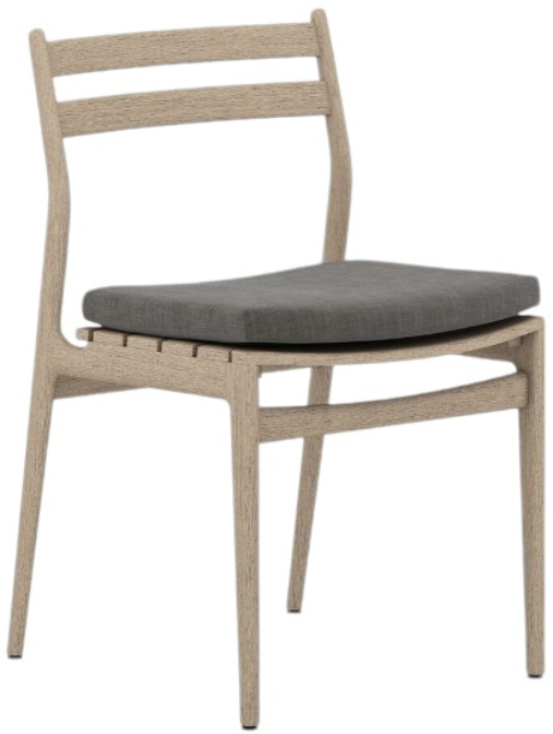 Slim, simple style. Washed brown teak offers streamlined support for a single cushion upholstered in UV-resistant and water-repellent fabric in a neutral stone grey. Cover or store indoors during inclement weather and when not in use. Our Weatherproof Outdoor Dining Chair Cover in size small fits this chair.Read More