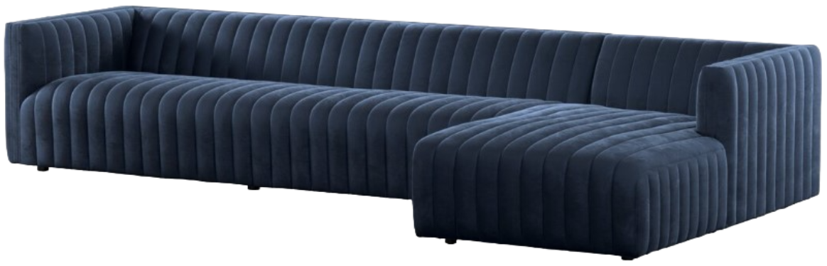 A dramatically channeled sofa wrapped in a sapphire navy upholstery creates a mature, clean look inspired by modern menswear. Two-piece sectional with right arm-facing chaise, perfectly sized for smaller spaces.Read More