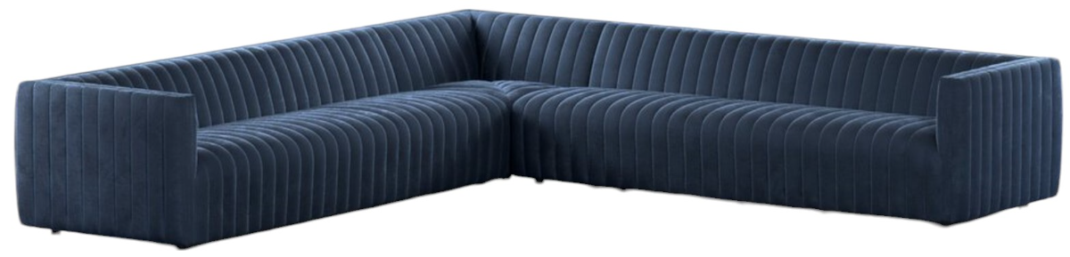 A dramatically channeled sofa. Clean look inspired by modern menswear. Three-piece L sectional sized for larger spaces. This piece is made to be both gorgeous and sturdy. Make a bold statement by incorporating this piece into your home.Read More