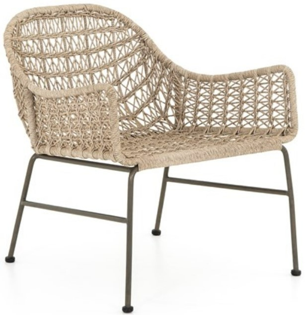 Clean, contemporary shaping and an updated weave transform all-weather wicker into something modern. This outdoor-friendly take on the club chair is supported by a contrasting bronze base. Cover or store indoors during inclement weather and when not in use.Read More