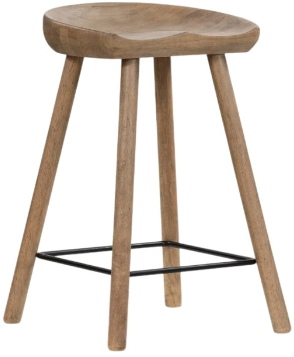 The Four Hands Barrett Natural Matte Counter Stool offers a comfortable seating option with a sturdy construction. Its natural matte finish adds durability, making it a great choice for kitchen or bar spaces. Sculpted for comfort. Crafted from natural parawood, black iron stretchers lend an updated look to simply styled counter seating.Read More