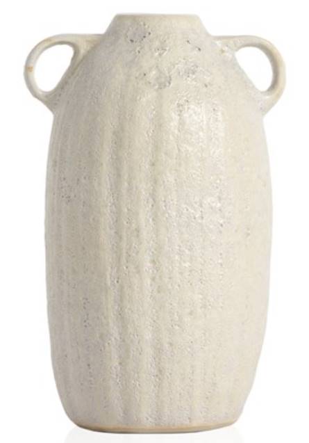 Lightly textured, the natural lines gently carved into the glaze complement the soft cream tones of this ceramic vase. Simple profile accented by hand-finished details. Subtle variations in overall size are to be expected and convey the handmade nature of each individual vase.Read More