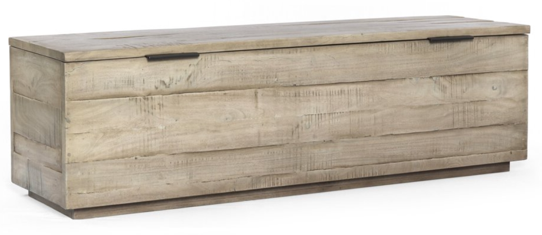 Subtle architectural details deliver on form and function as the natural lines of solid, weathered grey acacia wrap sculpted corners. Cutouts for easy open, and spacious interior for storage or extra blankets, clothing or seasonal décor.Read More