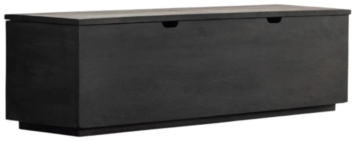 Solid mango adds depth to streamlined shaping. Aged brown tones reveal natural knots and graining for a distinctively found feel. Spacious trunk space perfect in entryway or at the foot of the bed. Plinth base adds a modern touch.Read More