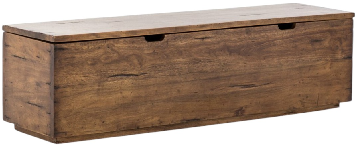 Rich, reclaimed woods deliver depth beyond streamlined shaping. Warm brown tones reveal natural knots and graining for a distinctively found feel. Spacious trunk space perfect in entryway or at the foot of the bed. Plinth base adds a modern touch.Read More