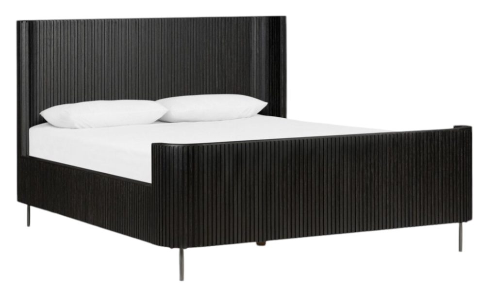 Rich with reeding for great texture and a linear look, distressed black-finished solid oak features curved corners, bringing subtle softness to a midcentury-inspired bed. And this will be a great fit into our home.Read More