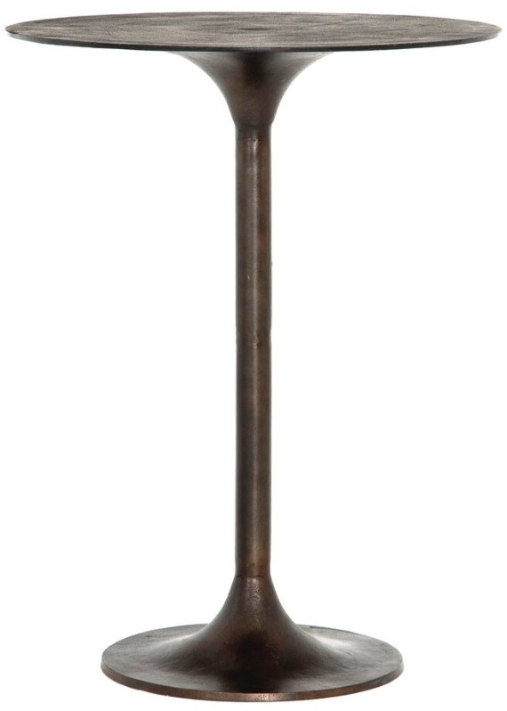 Classic tulip shaping in textural cast aluminum makes for a modern pub table. Finished in antique rust to bring out alluring highs and lows. Great indoors or out — cover or store indoors during inclement weather and when not in use.Read More
