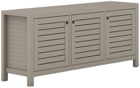 Take outdoor storage to new heights. Finished in a weathered grey, solid FSC-certified teak forms a modern-minded sideboard, with slatted fronts for a light, linear look. Cover or store indoors during inclement weather and when not in use.Read More