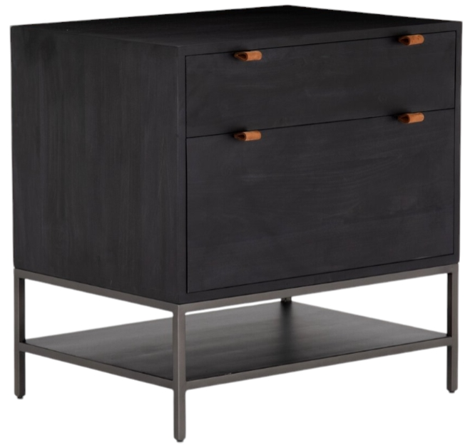 Inspired by clean mid-century design, black-finished poplar offers generous extra file storage space, with a fully finished back plus metal-secured leather pulls for an element of surprise. Great solo or paired with matching desk or credenza.Read More