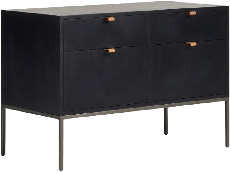 Inspired by midcentury design, black-finished poplar offers ample file storage space, with a fully finished back. Metal-secured leather pulls add an element of surprise. Great solo or paired with matching desk or credenza.Read More