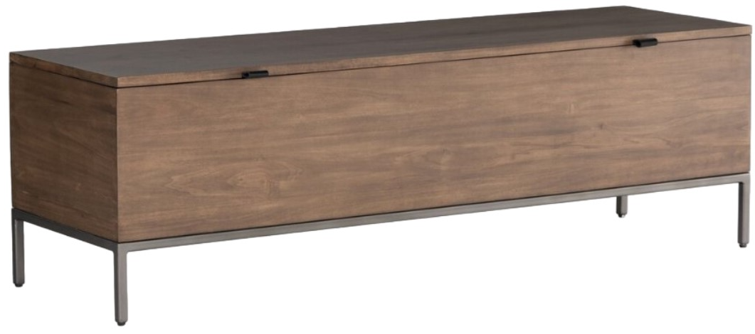 A spacious trunk of auburn-finished poplar is perfect when styled at the foot of the bed for storage of extra blankets, linens, seasonal items, and more. Black top-grain leather pulls add modernity.Read More