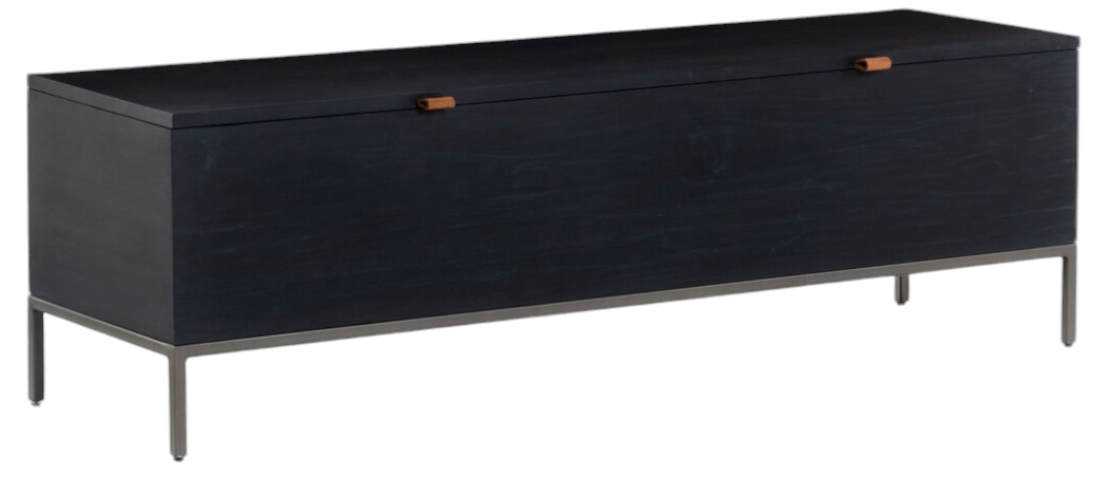 A spacious trunk black-washed poplar is perfect when styled at the foot of the bed for storage of extra blankets, linens, seasonal items, and more. Toffee-colored pulls of top-grain leather add modernity.Read More