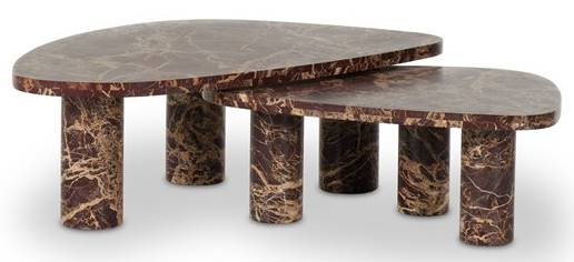Made from solid marble with visible natural veining, turned pillar-style legs complement organically shaped tabletops, perfectly sized for nesting. Option to buy tables individually or together as a two-piece set.Read More