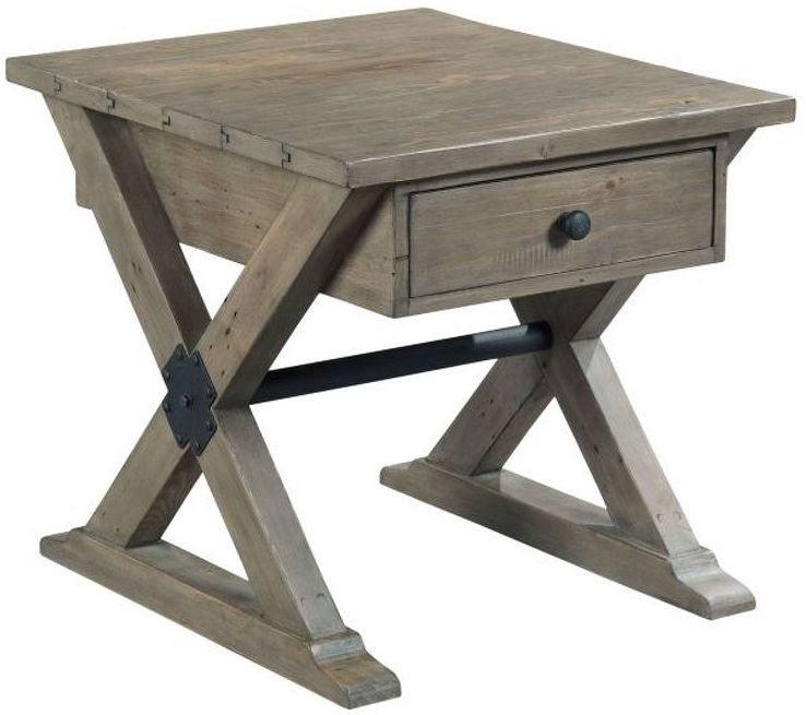 Reclamation Place Brown Trestle Drawer End Table features one drawer.Read More