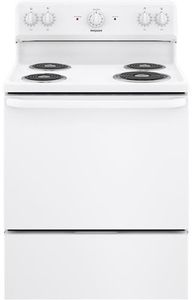 Porcelain upswept cooktop raised edges contain spills, while the surface is easy to wipe clean. Drip bowls contain spills and remove for easy cleaning. Removable full-width storage drawer store cookware or kitchen accessories.Read More