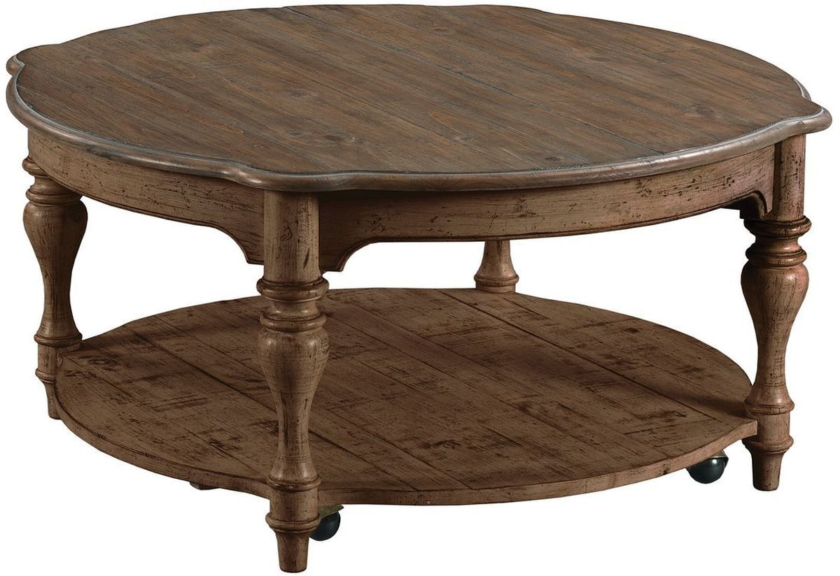 The Kincaid® Weatherford Bolton round cocktail table showcases timeless craftsmanship with its solid wood construction and soft heather finish. Its round design and detailed turned legs add charm, while the spacious tabletop offers a perfect surface for gatherings and décor display.Read More