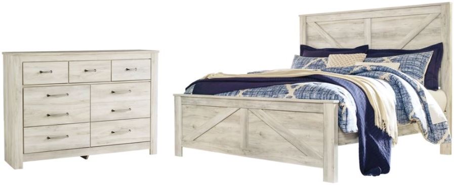 Gorgeous and modern, this charming bed and dresser express your farmhouse style. Wispy white finish over replicated oak wood grain infuses so much character for a weathered, rustic look you’ll love.Read More