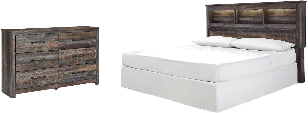 When merged in just the right way, rustic and industrial styles can make one happy marriage. Case in point: this bedroom set with bookcase headboard and dresser. A refined take on barn board beauty, its complex, replicated wood grain showcases hints of burnt orange and teal tones for a sense of weatherworn authenticity. Love to read in bed?Read More