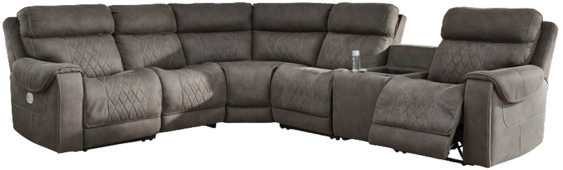 Includes 6 Pieces: Left-arm facing power recliner, power armless recliner, armless chair, wedge, console and right-arm facing power recliner