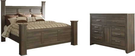 Includes poster bed (headboard, footboard and rails) and 6-drawer dresser