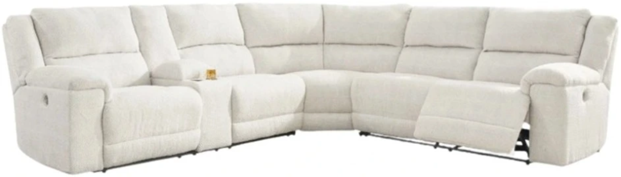 Includes left-arm facing power reclining loveseat with console, wedge and right-arm facing power reclining loveseat