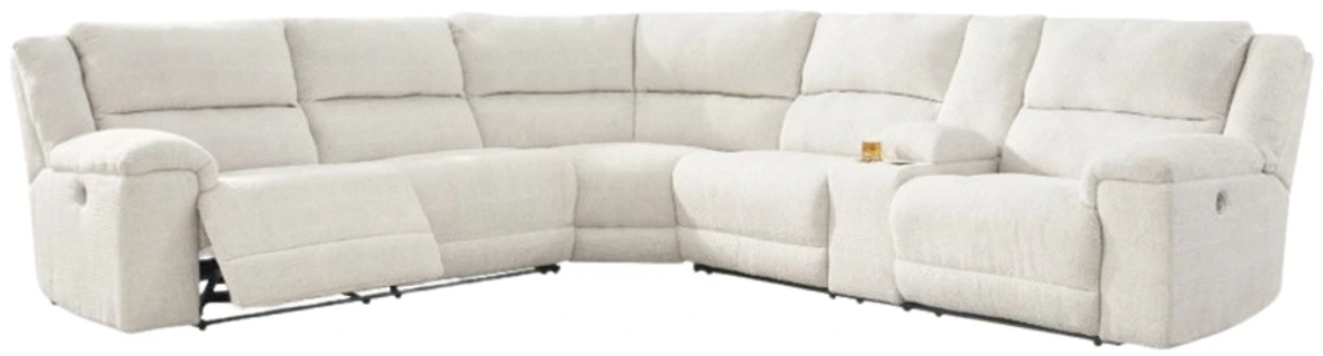 Includes left-arm facing power reclining loveseat, wedge and right-arm facing power reclining loveseat with console