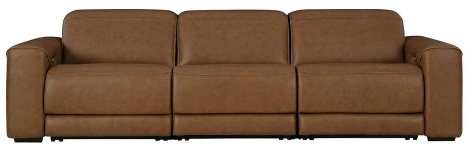 Sleek and streamlined, this contemporary power reclining sectional sofa is ready to sweep you off your feet. Its plush, divinely comfortable cushioning is wrapped in decadently soft leather and faux leather upholstery. The push of a button doubles your relaxation, reclining your body and adjusting your headrest to infinite positions.Read More