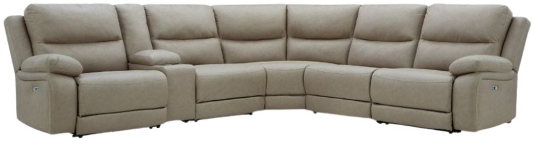 Experience ultimate comfort with this power reclining sectional. Generously cushioned with plush bustle back styling and pillow top track arms, it's wrapped in a richly neutral upholstery that’s oh-so soft. Jumbo stitching gives the sectional added definition. The one-touch power control and USB charging take the pleasure of reclining to a higher level.Read More