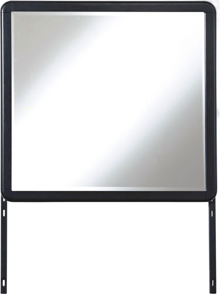This Rowanbeck bedroom mirror in black finish is made with hardwood solids and ash veneer. With a square shape, and pairs with other items in the series to make a perfect dresser kit.Read More