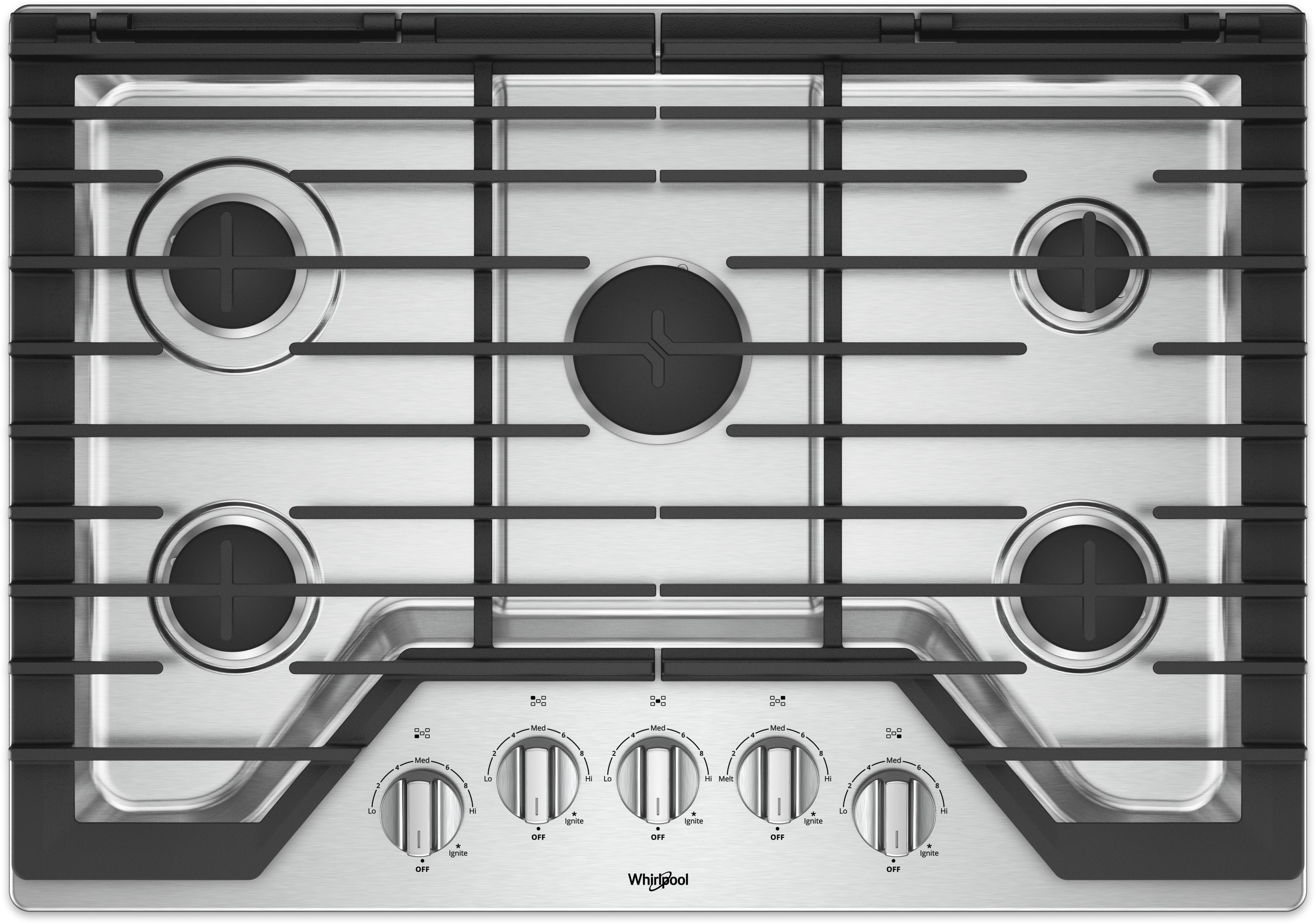 Whirlpool® 30" Gas Cooktop-Stainless Steel with 5 burners, dishwasher-safe knobs and cast-iron gratesRead More